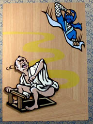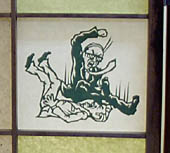 和紙で48手の15点を切り絵にして 貼った「リストラ屏風障子」に もう作らないと思われる「極悪サンタ手拭い」 そして愛用のちゃぶ台です... |